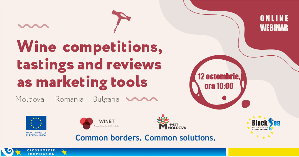 Concursurile, degustările și recenziile în calitate de instrumente de marketing vor fi discutate de către specialiștii din domeniul vitivinicol din Moldova, Romania și Bulgaria în cadul unui webinar organizat de către proiectul transfrontalier WINET pe 12 octombrie.